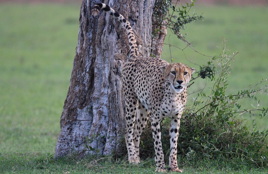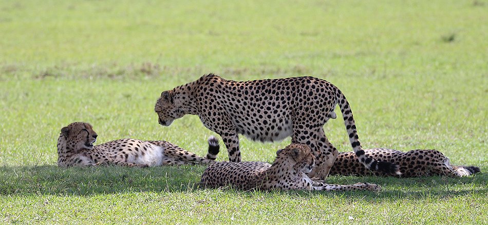 Nach dem vielversprechenden Safaristart in der Mara fuhren wir weiter in Richtung Talek Gate und nutzten dazu die Pisten durch das Hammerkop Gebiet. Einem Gebiet, welches zum Revier der fünf Geparden Männchen gehörte. Die ungewöhnlich große Koalition aus jeweils 2 Brüdern und einem einzelnen, aus der Serengeti eingewanderten Geparden Männchen, war aktuell ein Garant für außergewöhnliche Jagdszenen. Nicht nur das die fünf Geparden äußerst effektiv jagten, sie wagten sich auch erfolgreich an recht große Beutetiere wie Gnus, Topis oder Zebras. Eigentlich wollte ich im Hammerkop Gebiet versuchen von anderen Fahrern Informationen über den momentanen Aufenthaltsort der Fünf erfragen, als wir sie plötzlich im offenen Gelände vor uns liegen sahen. Mit deutlich dicken und gefüllten Bäuchen lagen alle fünf Kater im Schatten einer großen Akazie. So, wie ich sie schon einmal mehrere Stunden beobachtet hatte. Damals hatten wir vergeblich auf eine abendliche Jagd gehofft.